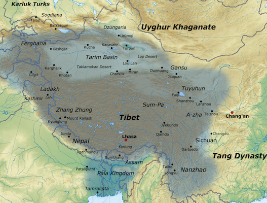 But already in 747, the hold of Tibet was weakened by the campaign General Gao Xianzhi, of Korean origin, who succeeded against the Tibetans to reopen communications between Central Asia and Kashmir. By 750 the Tibetans had lost almost all influence over central Asia, and even Gilgit was recaptured by the Chinese. However, Gao Xianzhi was defeated by the jihadists at the Battle of Talas (751)… with the help of the Tibetans. Consequently, Chinese influence rapidly declined and Tibetan influence began to increase again. It was during this time that Tibet conquered large sections of northern India.