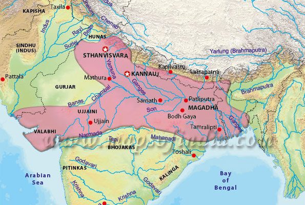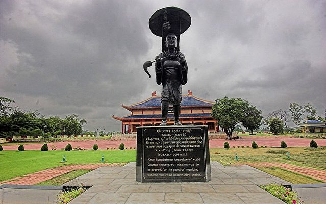 The famous Chinese itinerant monk Xuanzang (602-664) had been instrumental in the opening of the first Chinese embassy in Kanauj. He praised Harsha’s sense of justice and generosity, reporting to his Emperor how peaceful and prosperous Harsha’s kingdom was. He further described the ability of his cosmopolitan court to attract the best scholars, artists and religious visitors from far afield. But the reasons behind this alliance were not merely religious or cultural. The 7th Century also saw the victory of Islamic jihad in central Asia, and its progression further East, gaining control of the Chinese Silk Road among other things. Muslims also targeted Buddhism as deadly idolatry and the ancestral Buddhist presence had already been eradicated in areas such as Afghanistan, known for its famous 6th Century monumental Buddhas of Bamiyan, finally destroyed by Muslim warriors in 2001.